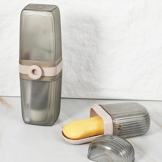 - 【Versatile Use】Our travel set is designed for multi-purpose use, accommodating a variety of personal care items, including standard toothbrushes, toothpaste tubes, and combs. The spacious portable soap holder e has ample capacity for most hygiene essentials while maintaining a compact design. Suitable for a variety of environments, including home bathrooms, hotel rooms, gym lockers, school dormitories, camping trips, and more