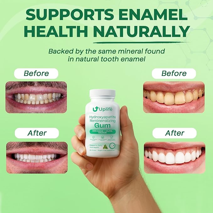 Uplife Hydroxyapatite Remineralizing Gum β Sugar-Free Xylitol Chewing Gum β Supports Daily Oral Health & Fresh Breath β Zero Sugar, Mint Flavor, 62 Pieces