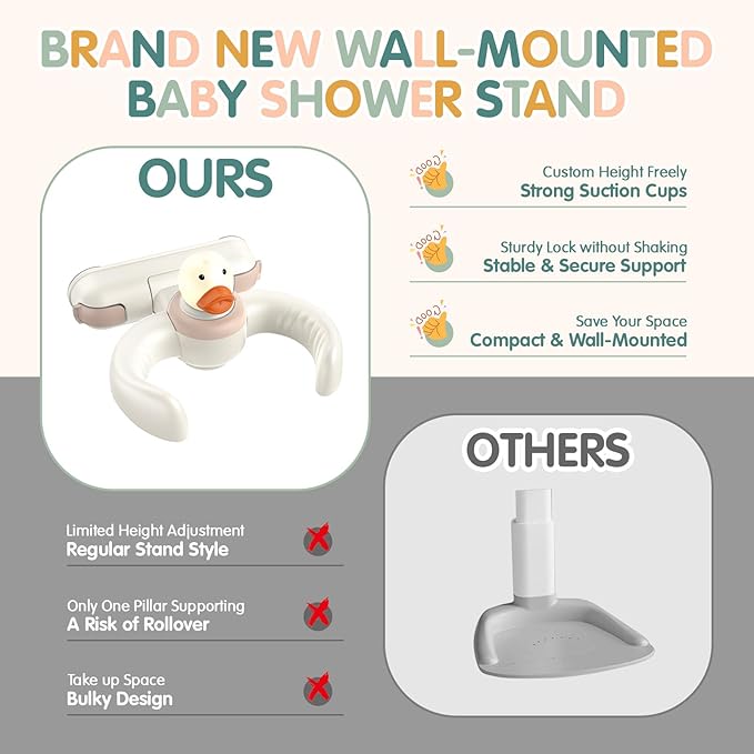 - [Strong Vacuum Suction & No-Drill Installation] The upgraded suction cups of the toddler shower stand securely adhere to smooth surfaces (tiles/glass) without drilling. It can support up to 50 lbs, ensuring maximum stability and safety during use.(Make sure tub walls are clean for best suction hold)