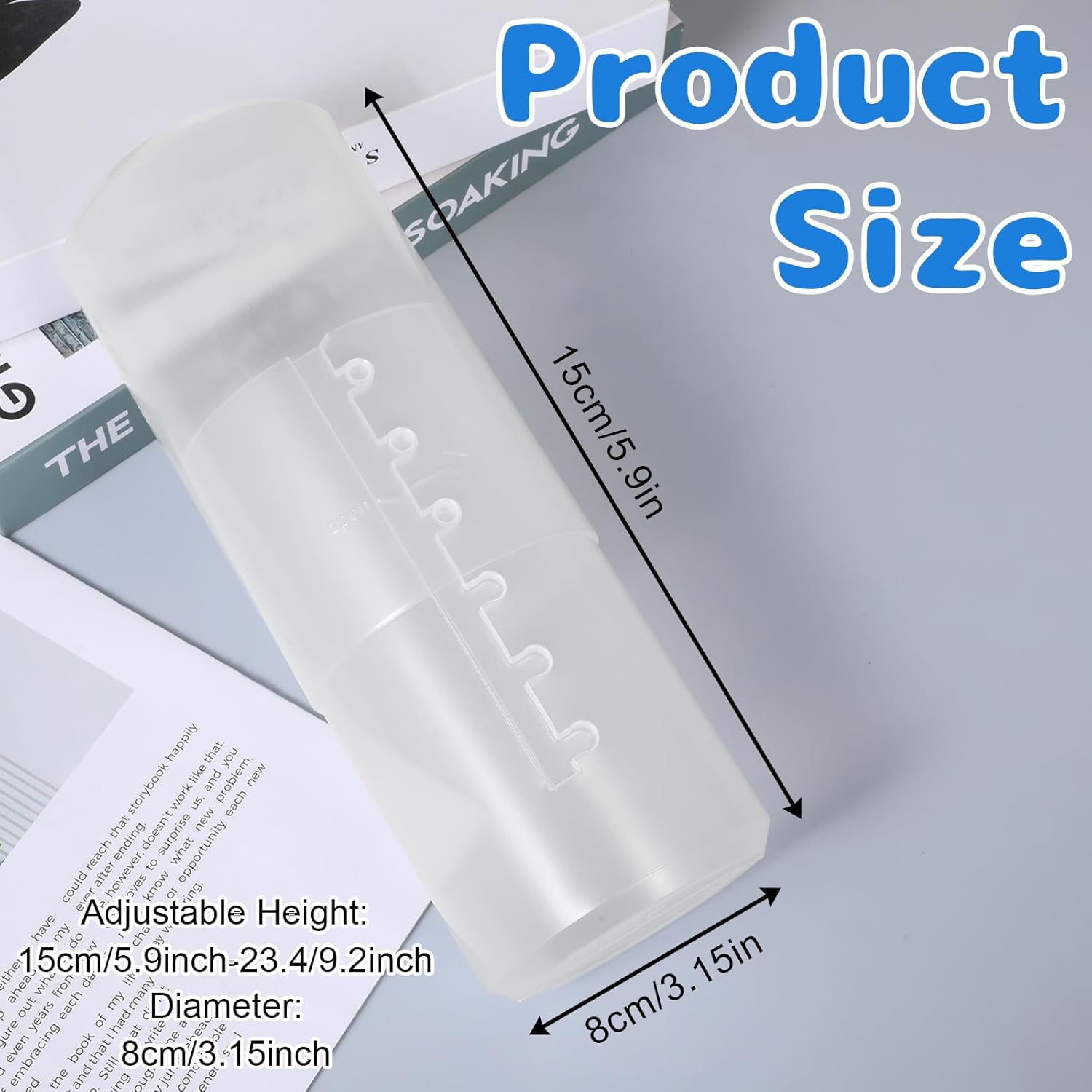 - [Optimal Capacity] With a 3-inch diameter and expandable height, this makeup brush cup can hold 10-15 standard brushes, as well as other cosmetics such as eyeliner, lip gloss, or pencils. The spacious interior organizes your collection without crowding, while the transparent design provides quick visual access to all items. This brush organizer efficiently utilizes space in your luggage or on your dressing table, keeping your essentials neatly organized and easily accessible wherever you go.