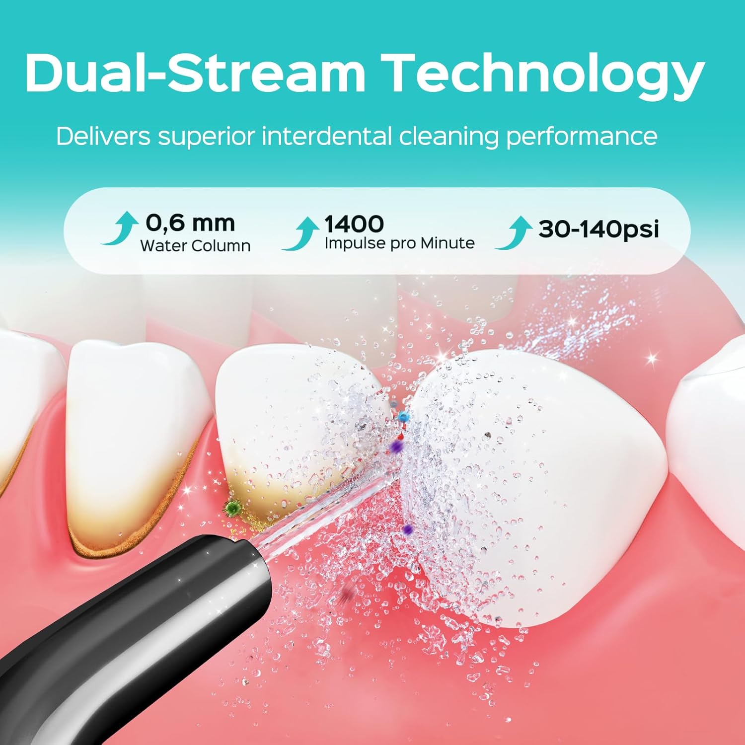 - 4 Modes & 5 Intensities for Personalized Cleaning: Tailored for various oral care needs, this water dental pick offers 20 unique cleaning combinations. From gentle massage for sensitive gums to powerful pulses for deep cleaning between teeth and around braces wires, it’s suitable for teens in orthodontic care, adults managing daily cleaning, or elderly users with delicate teeth. The intuitive button makes switching easy—ideal for quick clean-ups after meals or part of your everyday use at home, ensuring healthy habits for the whole family