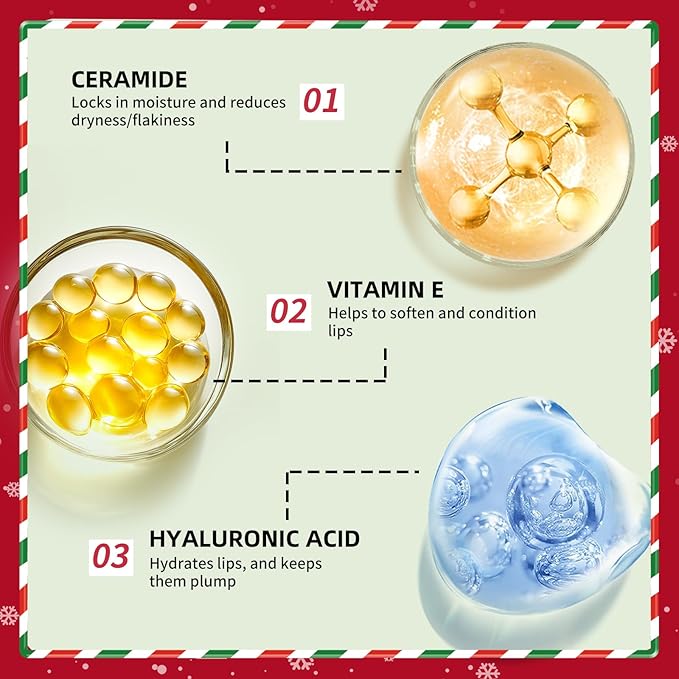 - Long-lasting Moisturization Lip Gloss: This skin care set, enriched with ceramides, hyaluronic acid, and vitamin E, delivers deep hydration for hours and keeps your lip soft and supple