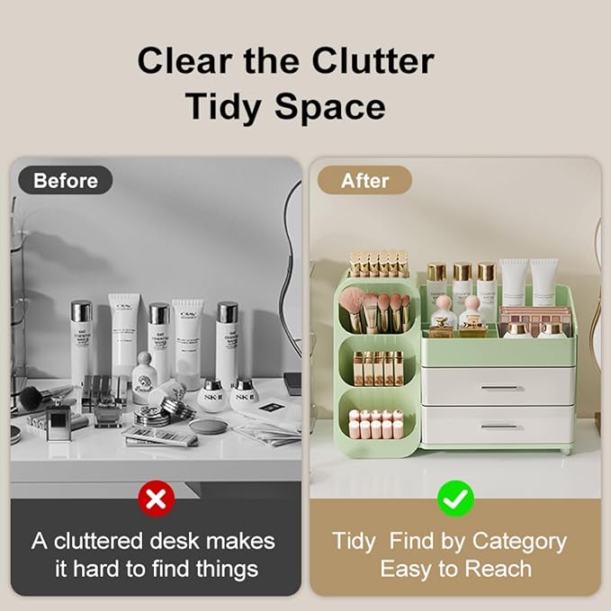 - Efficient Organization:Keep your makeup collection tidy with this spacious organizer, featuring drawers and compartments to neatly store all your cosmetics