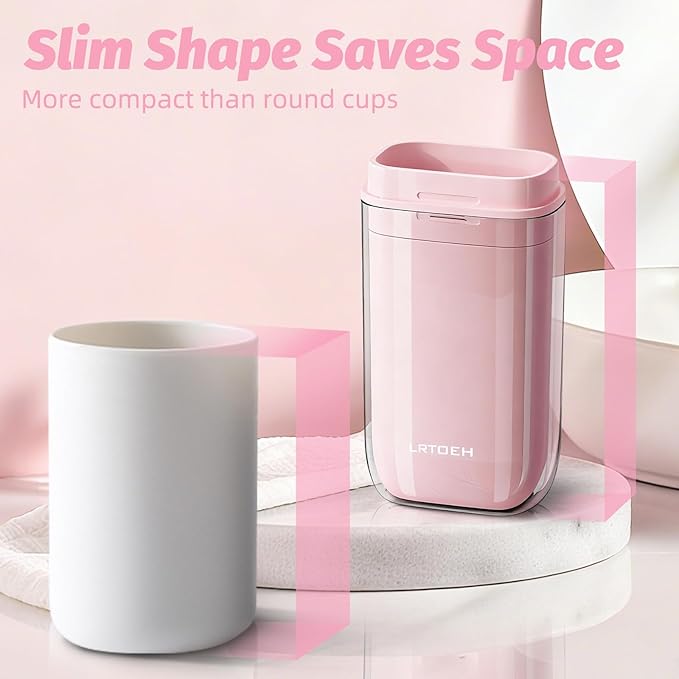 - Slim Shape Saves Space: Flat design fits comfortably in hand and saves luggage space. More compact than traditional round cups, perfect for gym lockers, dorms, commutes, or bathroom counters.