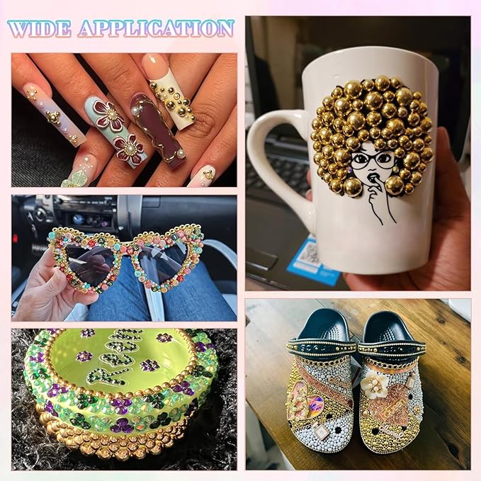 - WIDE APPLICATION -- These sparkling iridescent pearls are perfect for creating dazzling looks. Use them for bedazzling crafts like shoes, tumblers, mugs, bottles, phonecases, bags, glasses, hats, masks, clothing, clothes or nail art and more.
