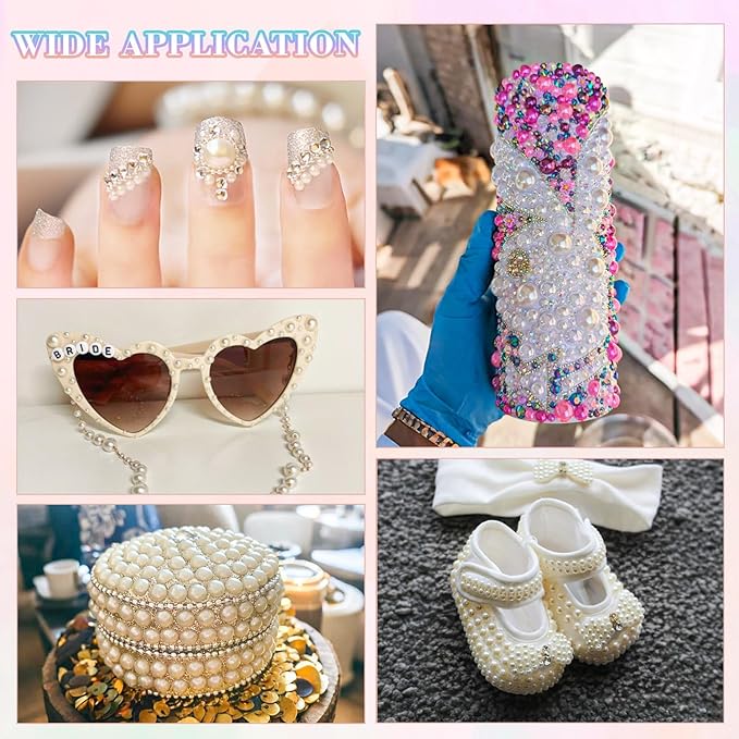 - WIDE APPLICATION -- These sparkling iridescent pearls are perfect for creating dazzling looks. Use them for bedazzling crafts like shoes, tumblers, mugs, bottles, phonecases, bags, glasses, hats, masks, clothing, clothes or nail art and more.