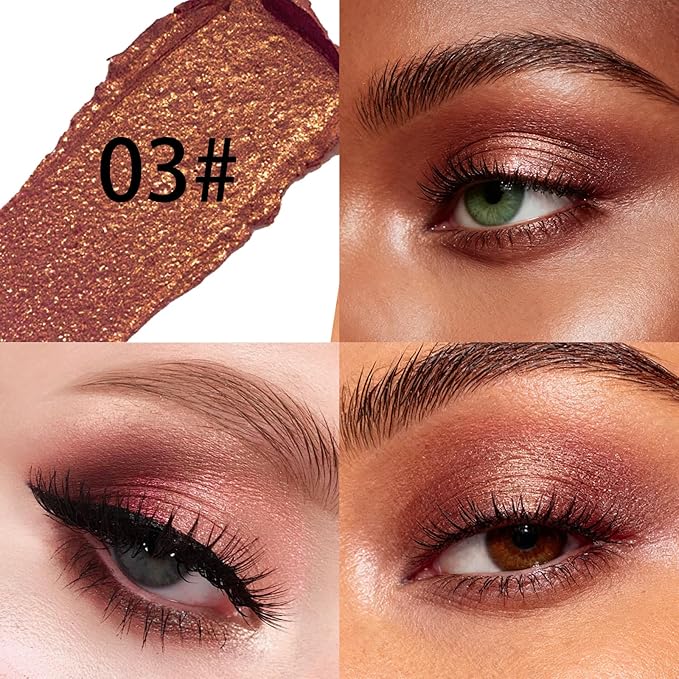 - ❤【Easy to Use】This eyeshadow stick is ingeniously designed. You can use it simply by rotating the tip of the stick. It has a soft and smooth texture, and with gentle application, you can easily apply the color. After applying, gently dab with your fingertips to create a perfect, shiny eyeshadow quickly.