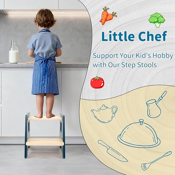 - PERFECT FOR GROWING KIDS: Wooden two-step stool brings kids two steps closer to independence. Our dual-height design with wide steps helps toddlers step their way up to independence as they transition from toilet potty training to washing hands and brushing teeth at the sink, and finally reach countertops and cabinets in your bathroom and kitchen.