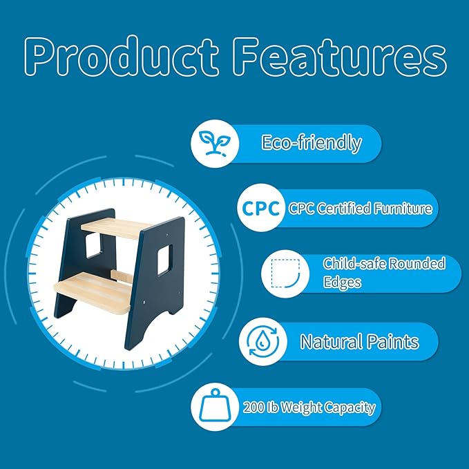 - ENHANCES SAFETY AND STABILITY: Our step stool features an "A"-shaped structure and non-slip rubber pads to ensure stability and prevent it from wobbling on any surface. Side armrests help young children climb for added safety and comfort.