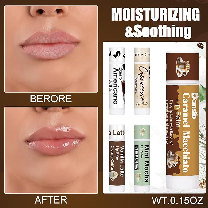 - Coffee Flavor Lip Balms: we will provide 25 lip balms, 5 flavors including Vanilla, Latte, Cappuccino, Mint Mocha, Caramel Macchiato, Americano, sufficient quantity; Those who received these lip balms can also share them with friends or family