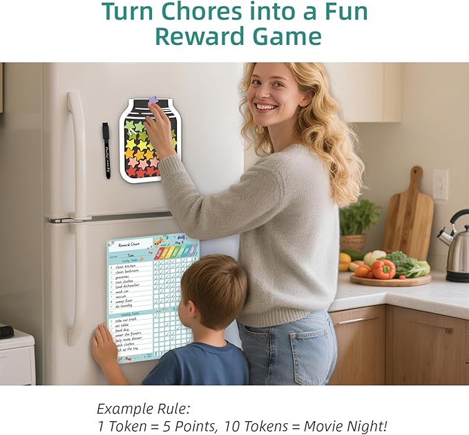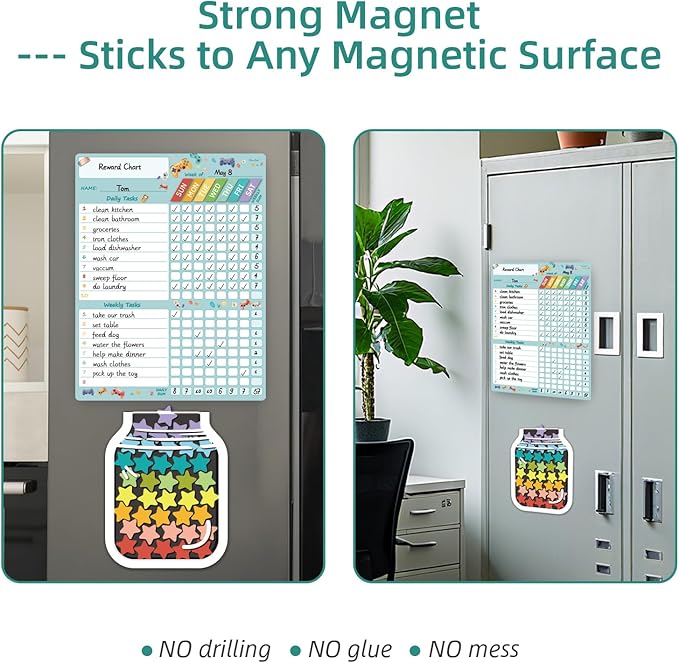 Magnetic Responsibilty Reward Chart for Kids - Magnetic Reward Jar with Stars Included - Ideal for Home Chore Tasks&Reward System