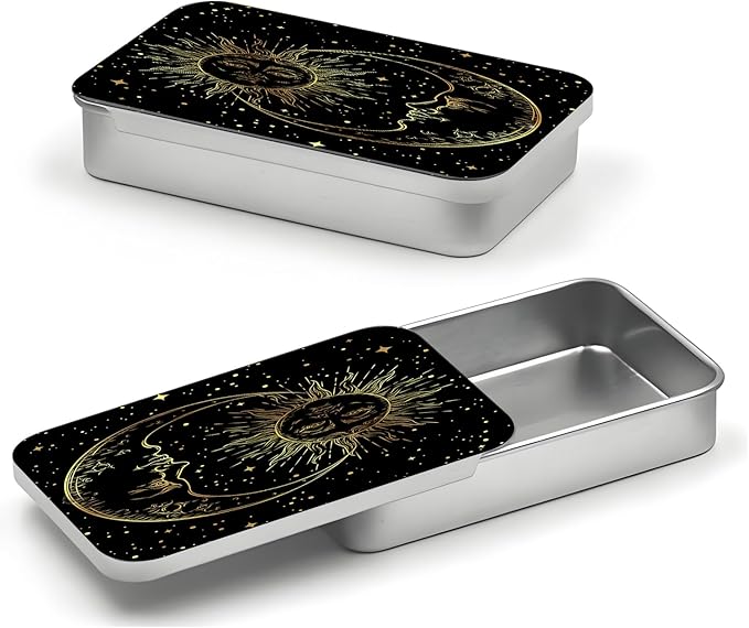 Portable Dental Floss Case, Refillable Cute Travel Floss Dispenser for Men & Women, Pocket Travel Floss Picks Case for Purse, Backpack, Bag Tarot Moon and Sun