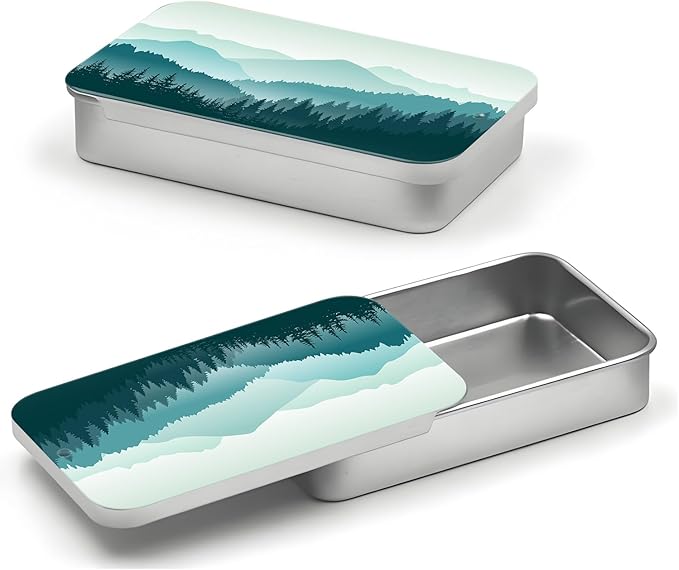 Portable Dental Floss Case, Refillable Cute Travel Floss Dispenser for Men & Women, Pocket Travel Floss Picks Case for Purse, Backpack, Bag Green Mountain Landscape