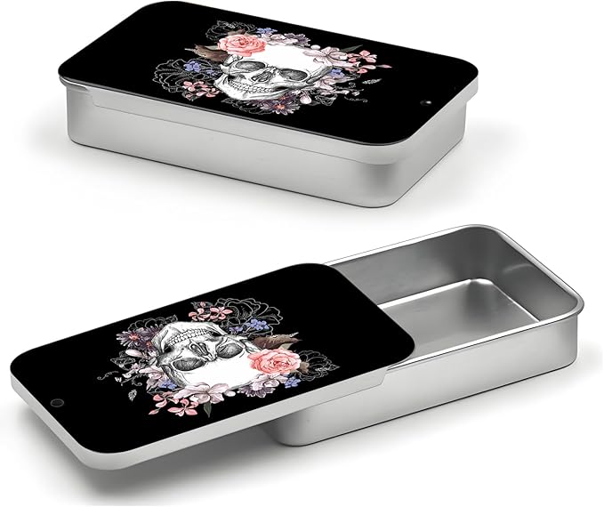 Portable Dental Floss Case, Refillable Cute Travel Floss Dispenser for Men & Women, Pocket Travel Floss Picks Case for Purse, Backpack, Bag Floral Skull Art