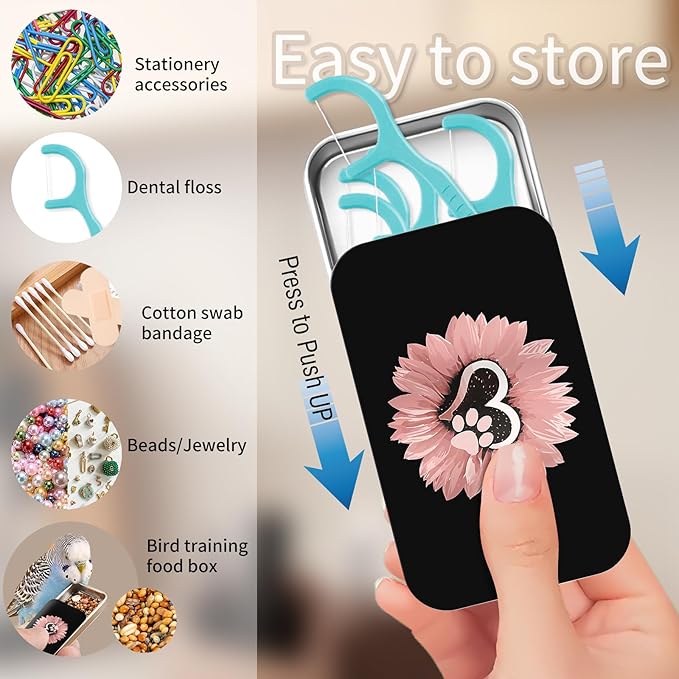 Portable Dental Floss Case, Refillable Cute Travel Floss Dispenser for Men & Women, Pocket Travel Floss Picks Case for Purse, Backpack, Bag Sunflower Pink Dog Paw