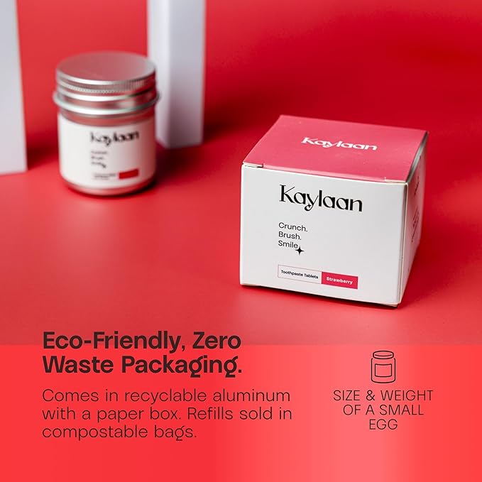 Kalyaan Kids Toothpaste Tablets with Fluoride | Whitening, Sensitivity Relief & Cavity Protection | Chewable, Plastic-Free, Travel-Friendly - Strawberry, 180 Count, Made in USA