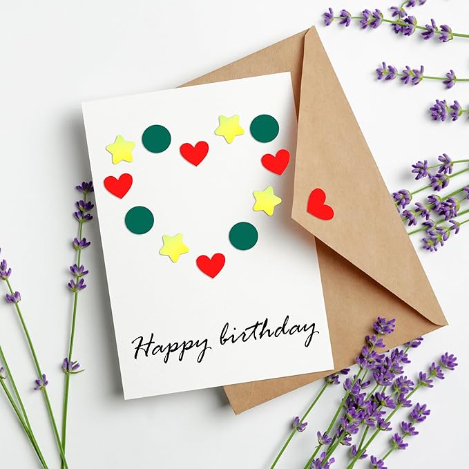 - MEGA VALUE PACK: Set of 2160 holographic stickers featuring stars, hearts, and dots in vibrant, eye-catching designs perfect for multiple uses