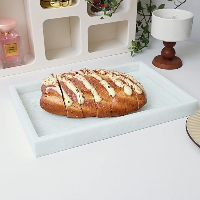 - 【INGENIOUS WORKMANSHIP】- Our luxury serving trays cut neatly and without burrs. The polished surface of the marble tray is particularly smooth and delicate to touch. Easy to clean. Heat resistant. Never fade. Sturdy and Durable. Ideal gift for housewarming, festival, parties