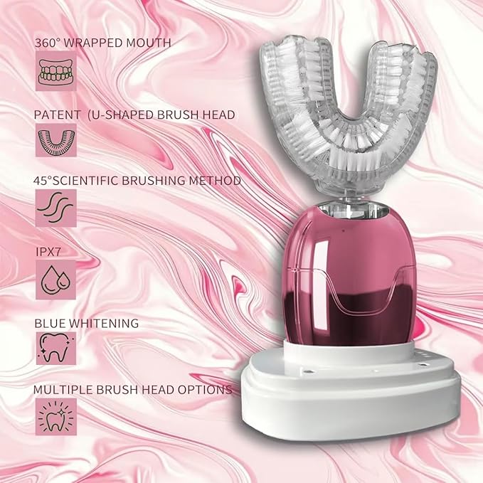 360° U-Shaped Toothbrush, Electric Toothbrushes for Adults, Multiple Brush Heads Options, Blue Light Whitening, IPX7 Waterproof, 360° Cleaning Suitable for People with Limited Mobility