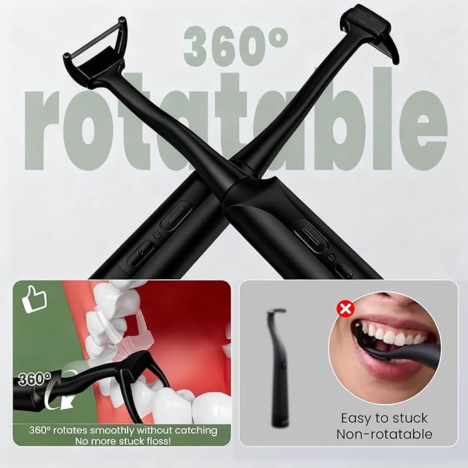 - 【2-Month Battery Life and Strong Waterproofing】- Designed for a seamless routine. The 60-day battery life means no constant charging, while the IPX7 rating allows you to rinse it clean under the tap. Paired with an ergonomic, non-slip handle for easy access to all teeth, it makes daily flossing a surprisingly simple habit.