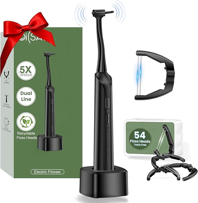 - 【5 Speeds, Unmatched Comfort】- Beyond standard 3-mode flossers, for healthier gums and habits. The electric flosser for teeth with 5 adjustable speeds, you can customize your clean for gum sensitivity, daily use, or intensive care. The ergonomic handle comfortably reaches molars, and our gentle sonic technology ensures power without harsh pressure, making oral care effortless.