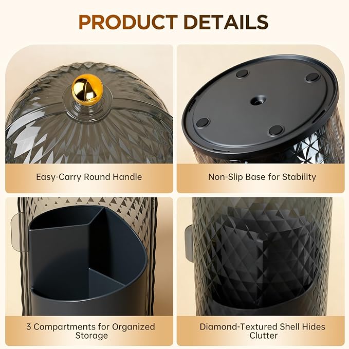 - 💧【HYGIENIC SLIDING COVER】This toothbrush caddy blocks dust with its 180° sliding shell and conceals clutter using a diamond-textured pattern for clean countertops.