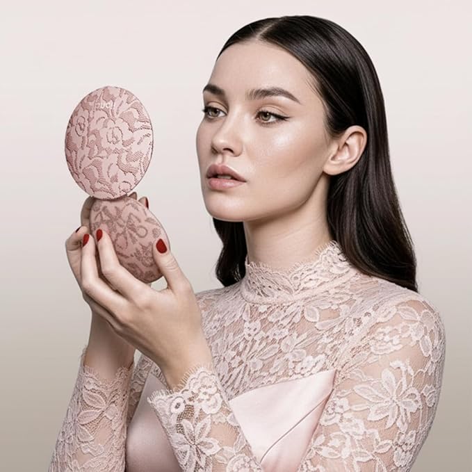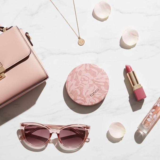 Fancii Taylor LED Lighted Travel Makeup Mirror, Rechargeable, 10x /1x Magnifying, Tru-Glow Lighting System, XL Large 5” Wide | Compact Mirror for Purses (Mocha Lace)