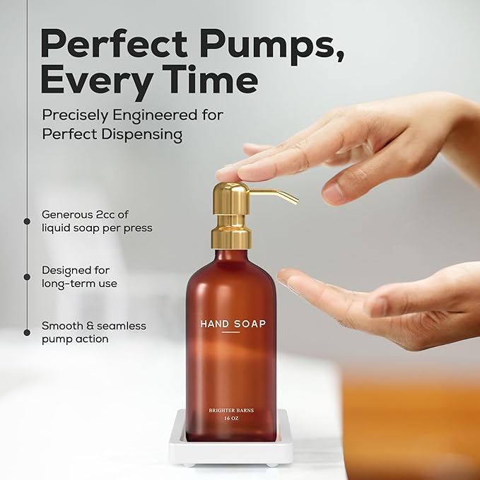 - AMERICAN DESIGN, UNCOMPROMISING QUALITY - Crafted with meticulous attention to detail, our aesthetic glass soap dispenser with pump set features 2 robust 16oz glass bottles, corrosion-proof 304G stainless steel pumps, and a stain-resistant ceramic tray. All designed in the USA to provide unbeatable quality and enduring style that you can trust.