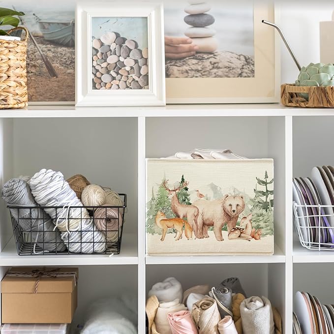 Rectangular Kids Storage Basket with Handles,Toy Baskets Storage Kids,Cute Animal Woodland Foldable Nursery Decorative Baskets for Kids Girls Room Dorm Bedroom Bathroom Clothes Toys Books