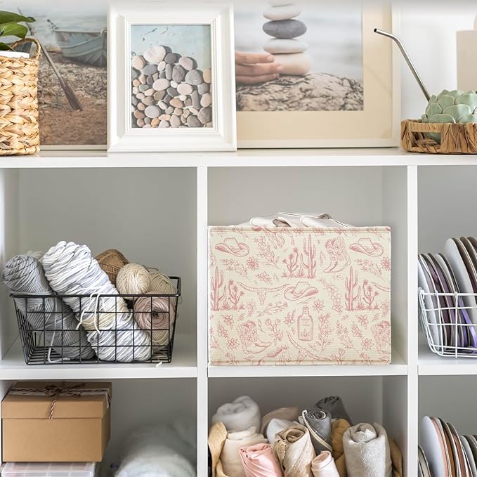 Western Cowgirls Storage Basket Organizer Bins With Handles,Western Nursery Organizing Decorative Storage Basket for Home,Collapsible Closet Shelf Cloth Organizer Basket for Bedroom Bathroom