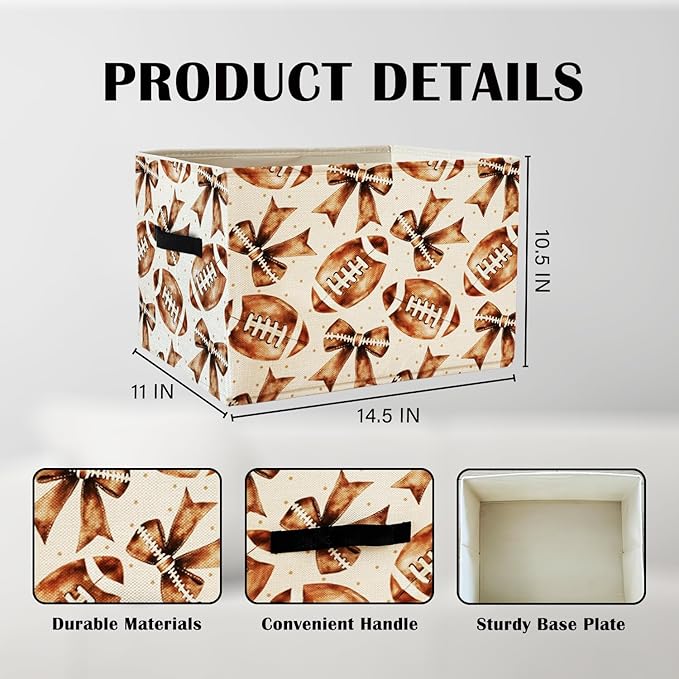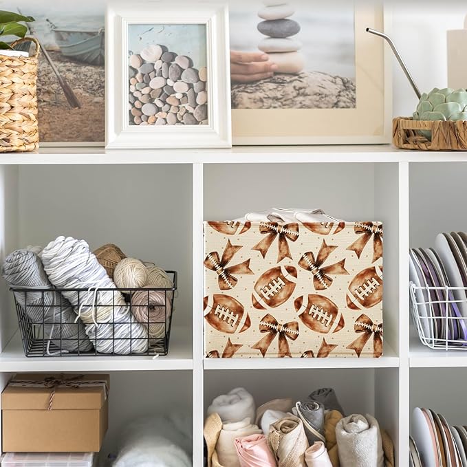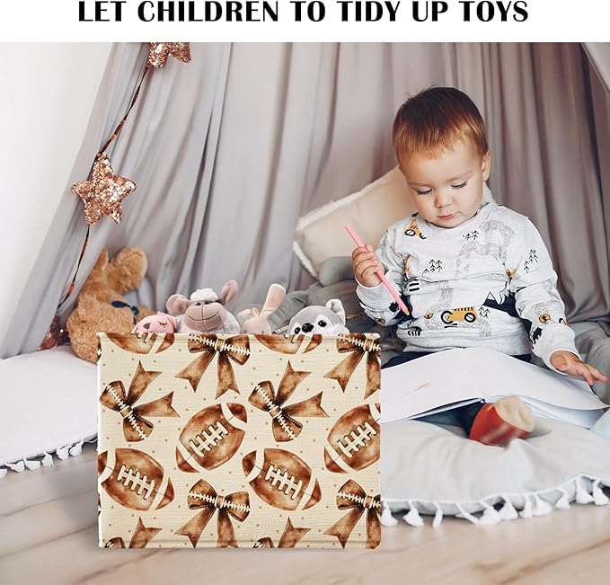 Coquette Football Rectangular Storage Basket Organizer Bin Shelf Baskets,Football Toy Box Organizers Storage Baskets,Cute Kids Toy Storage Bin Organizer Shelf Book Sports Football Room Decor
