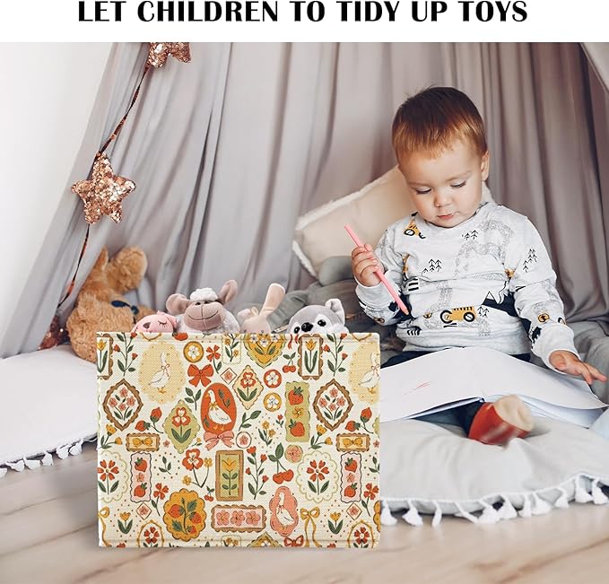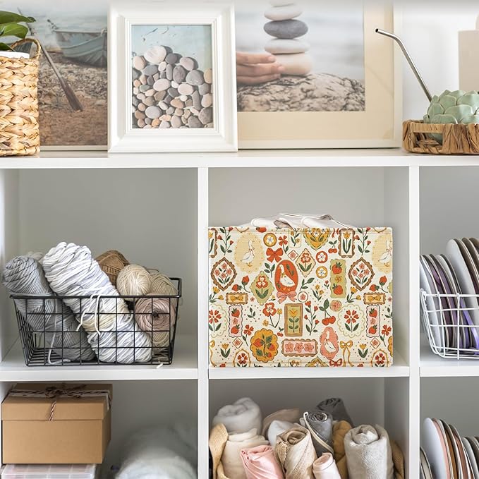 Funny Silly Goose Florals Cute Storage Basket Organizer Bins With Handles,Rectangle Cherries Foldable Nursery Decorative Baskets for Home shelves Bedroom Bathroom Clothes Toys Books Toybox