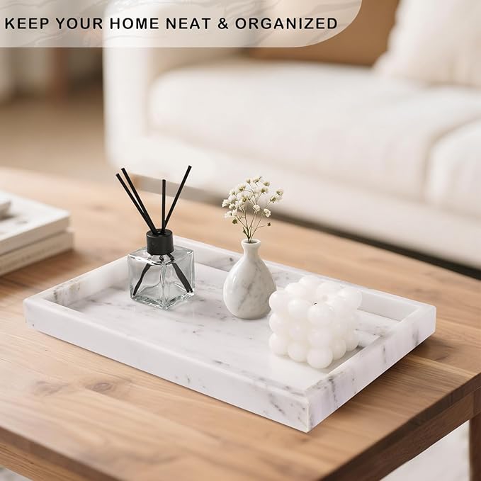 - Premium Natural Marble Material: This elegant bathroom tray is crafted from high-quality natural marble, providing a smooth surface. Perfect as a jewelry tray or as a perfume tray, this rectangle marble tray adds luxury for home decor aesthetic