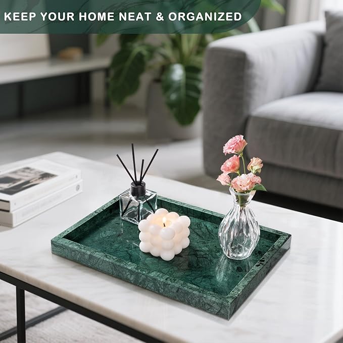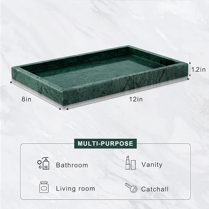 - Multi-Purpose: This marble catchall tray acts as an organizer for perfume, jewelry, candles, cosmetics, or other small items, keeping them neatly in place. The decorative stone tray suits bathroom countertop, coffee table, kitchen, or entryway