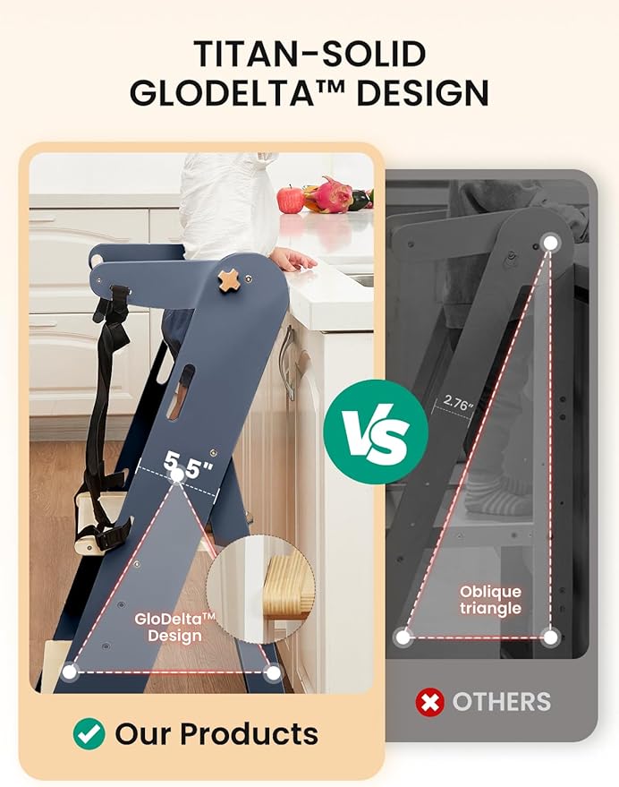 - Sturdy & Stable: Baby's independent exploration is as stable as a rock, no fear of falls even when active! The toddler step stool features widened side design with reinforced foot pads. Every edge is finely rounded to protect baby's hands from cuts, making growth safer and happier.(Tiled Floors Pose a Slipping Risk)