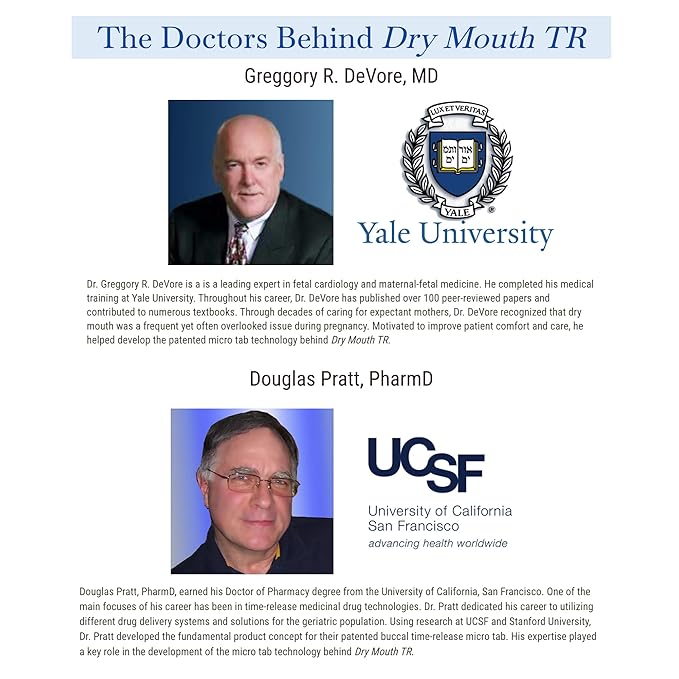 - * DOCTOR-DEVELOPED & PATENTED: Created by a Yale-educated physician and a University of California-trained pharmacologist specializing in time-release systems, Dry Mouth TR is protected under a U.S. patent by NeuOra Microceuticals.