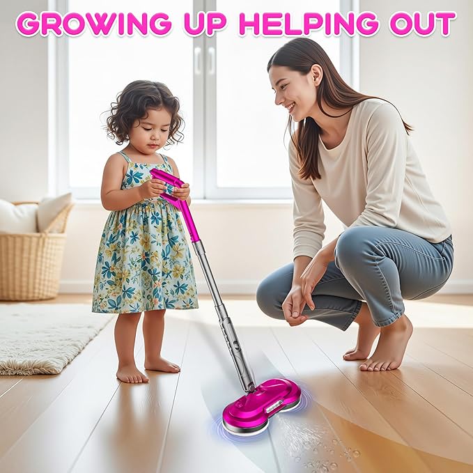 - [Realistic Pretend Play with Lights & Spray]: Experience immersive interative pretend play with this toy cordless electric spin mop! It features realistic spinning action, a fun spray function, and LED headlights, perfectly mimicking a true electric mop for authentic chore-play.