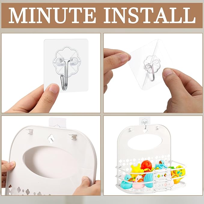 - Ideal Dimensions for Optimal Space: measuring about 10.63 x 10.63 x 6.69 inches/ 27 x 27 x 17 cm, these bath toy holders are expertly sized; They fit snugly in various bathroom nooks, whether it's beside the bathtub, on a narrow countertop, or in a corner; Hole at top for hooks to attach to wall, making them an ideal fit for bathrooms of all sizes, from spacious master baths to cozy powder rooms