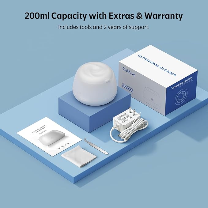 - 【Compact and Quiet Design】The 200ML pod is ideal for cleaning one item at a time. Its low-noise performance (under 45dB) and travel-friendly size make it great for home or on-the-go use.