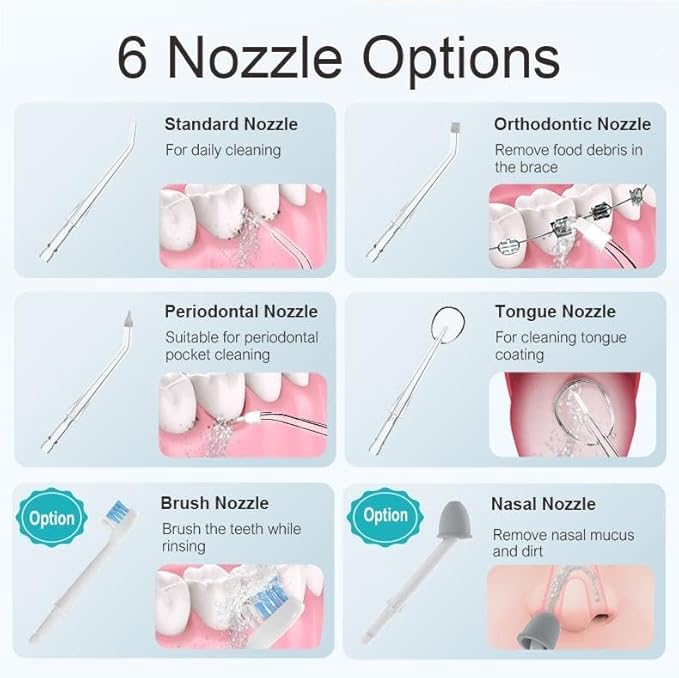 - 【4 Specialized Jet Tips for Versatile Use】 Includes 4 different jet tips (Standard, Orthodontic, Periodontal, Tongue Cleaner) to accommodate various cleaning focuses and preferences for multiple users