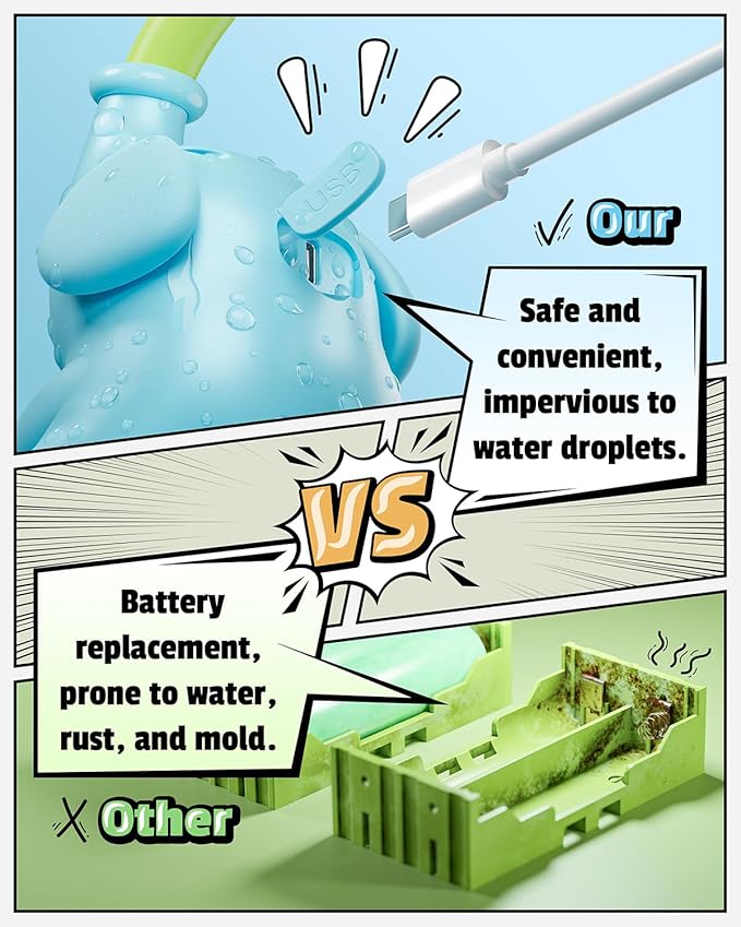 - 【USB Charging】: Our bathtub toys use a newly upgraded splash-proof USB charging method, allowing for safe charging even if there are water residues in the charging port. This solves the problem of battery compartments in other products getting wet, rusty, or moldy, eliminating safety hazards