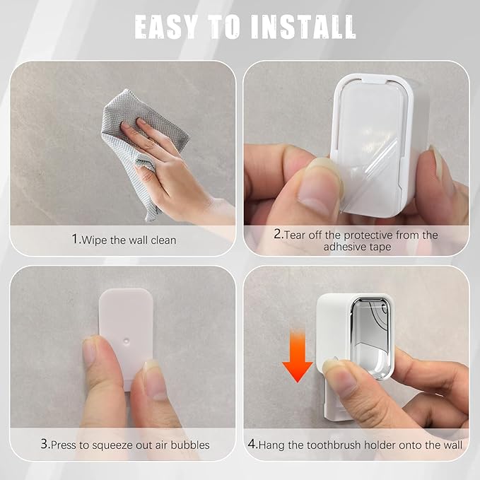 - Quick-Dry & Easy to Install - The wall-mounted toothbrush holder have drain holes on both sides of the bottom allows for quick and effective drainage of accumulated water. Simple choose a location, stick it to the wall, and it's ready for use. No tools or glue are required
