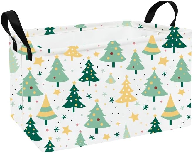 HUNRUNG Rectangle Storage Basket Cute Canvas Organizer Bin for Pet/Children Toys, Books, Clothes Perfect for Rooms/Playroom(Christmas tree)