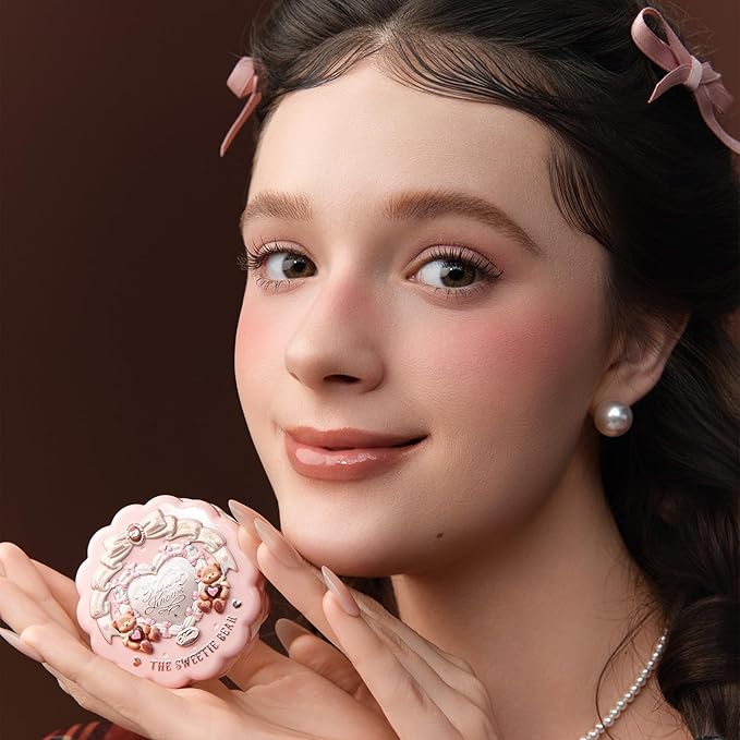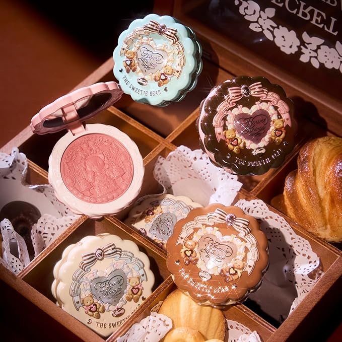 Flower Knows The Sweetie Bear Collection Silk Satin Blush,Seamless Soft Blendable Pressed Powder Pink Blush,Highly Pigmented & Long Lasting Natural Finish,0.18 Oz(03 Rose Chanson)