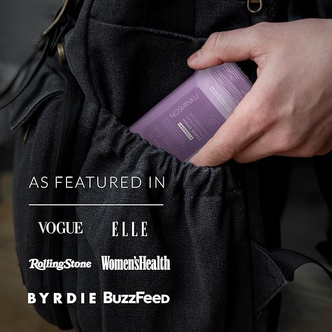 Noshinku – Lavendula Hand Sanitizer Wipes, 3-Pack (45 Towelettes) – Resealable Travel Wipes with Ethyl Alcohol, Aloe & Green Tea, Plant-Based Fiber, Essential Oil Scents, Cruelty-Free & No Dyes