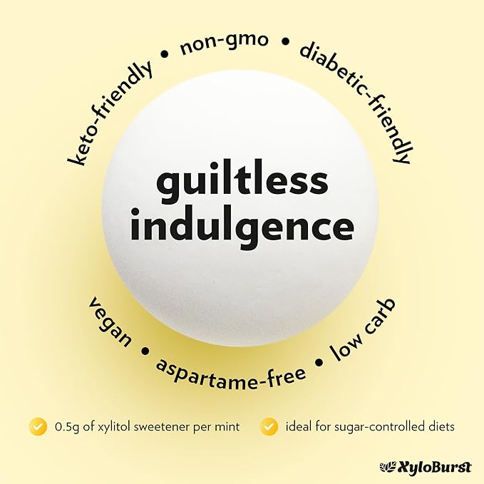 - REFRESHING XYLITOL MINTS - Indulge in the clean and invigorating flavor of XyloBurst mints, sweetened exclusively with 100% xylitol. Just like our xylitol gym, these sugar free breath mints promote saliva production, freshen bad breath, and enhance gum and tooth health.