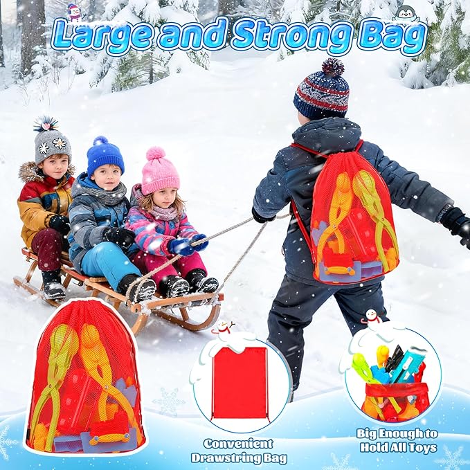 - Practical for Outdoor Play: With flexible, easy-grip handles on snowball makers, kids can make more snowballs quickly. The entire set is lightweight and stored in a portable bag, making it easy to carry for outdoor snow activities