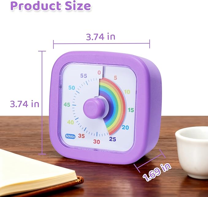 - Dynamic Visual Indicator: Designed with a retractable rainbow disk, the rainbow will continuously shrink as time passes, allowing for intuitive observation of time and making it easy for people of all ages, especially kids, to monitor time progress and develop time awareness.