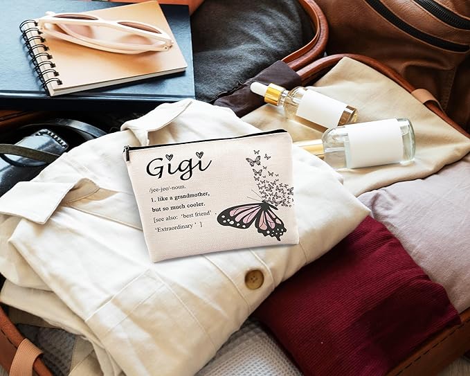 kdqua Gigi Butterfly Makeup Bag, Best Gigi Gifts for Christmas Birthday from Grandkids, Grandma Gifts from Granddaughters Grandsons Cosmetic Bags Zipper Pouch Travel Organizer Toiletry Bag