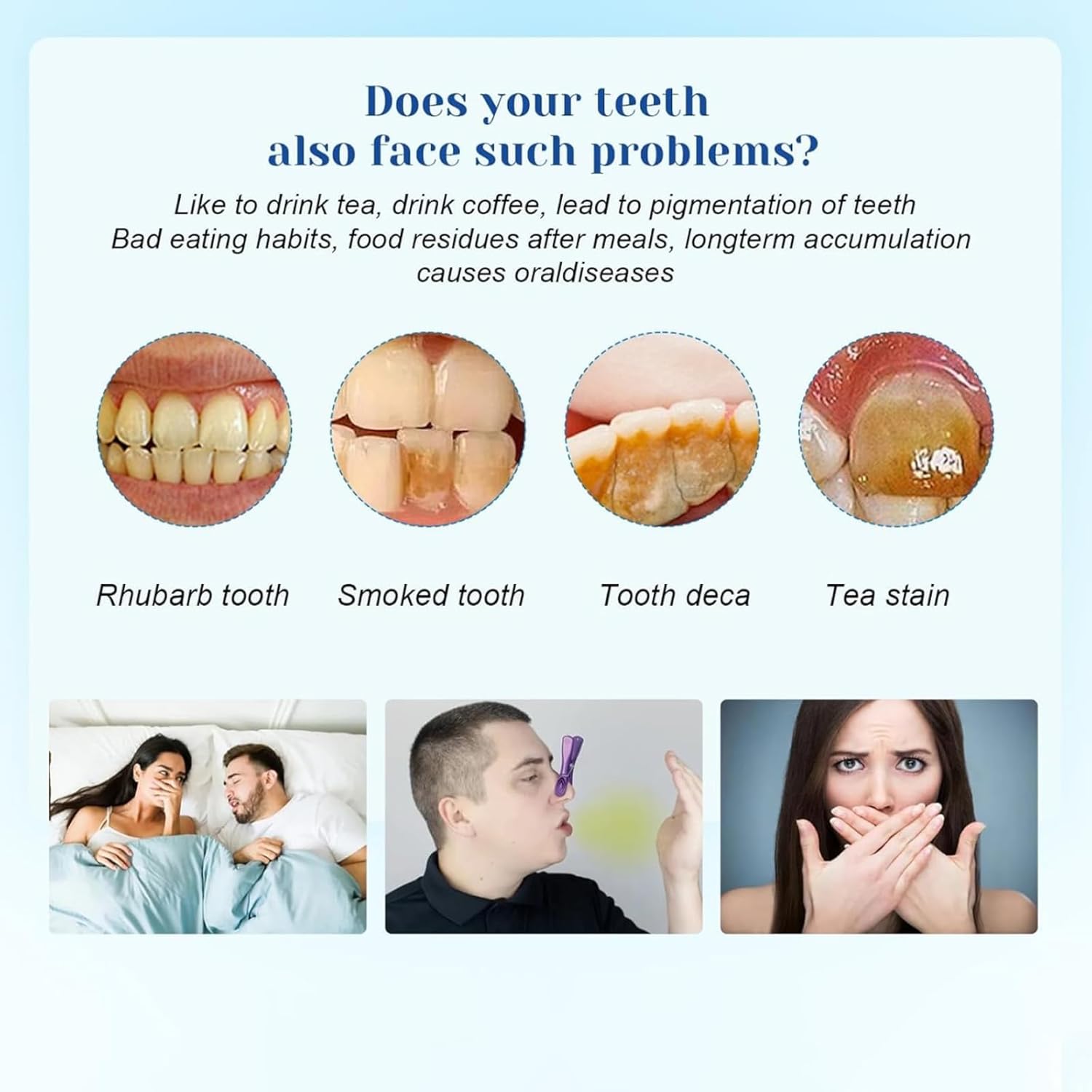 - This product is specifically designed to tackle stubborn stains and discoloration caused by daily consumption of coffee, tea, red wine, soda, and other foods and beverages. It quickly removes surface stains on teeth, delivering noticeable whitening results within 1–3 weeks and boosting your confidence to smile.